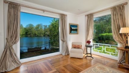 Lakefront. Sweeping lawns lead to the stone courtyard of this very special home with a glass enclosed indoor pool and beautiful views of the lake that is wonderful for fishing and kayaking. A spacious entrance hall with limestone flooring opens to the large living room with fireplace, dining room and mahogany paneled library with fireplace. There is a gourmet kitchen/ adjacent family room with fireplace, an office with adjacent bath and first floor master bedroom suite. The second floor has 3 bedrooms and 2 baths. This home is full of light and has exceptional water views. " A spacious entrance hall with limestone flooring opens to the large living room with fireplace..."