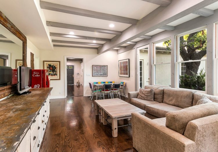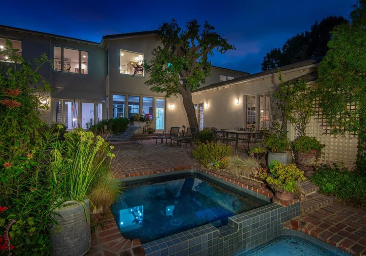 Originally built in 1929 and consisting of approximately 4,420 sq.ft. of living space, this home has been beautifully restored and filled with warmth and character. Light and bright with spacious rooms, gleaming hardwood floors, and gorgeous wood-beamed and paneled ceilings. The spacious formal foyer is accentuated by an iron-railed staircase and flanked on one side by the gorgeous step-down living room with fireplace and French doors that open to the rear garden, and a elegant formal dining room on the other side. The cook’s kitchen has been recently updated and features professional appliances and a butcher-block center island with breakfast bar. Also included on the main level is the family room, powder room, maid’s quarters with private side entrance, laundry room, and generous guest room with bath. The upper level is complete with two family bedrooms and the large master suite with fireplace, wonderfully remodeled bathroom, and walk-in closet. The backyard is a completely private, tranquil retreat with tall surrounding hedges, brick patio, bonus/pool room with bath, sparkling pool with slide, spa, and large grass area.
