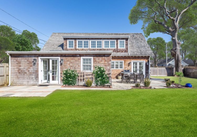 The shingled traditional is close to all the shops, restaurants and galleries of Main Street with easy access to the train or Hampton Jitney and just down the road from miles of pristine ocean beaches. A gut renovation includes all new systems and oak floors throughout with ample sized bedrooms and baths and an open eat-in kitchen as well as formal dining room. A living room and master suite opening through French doors to the roses in the back yard complete the first floor along with powder room and laundry. Upstairs are two bedrooms and a skylit full bath. French doors open from the kitchen onto the patio and back yard which is fully fenced for privacy, creating a perfect setting for relaxing or entertaining.
