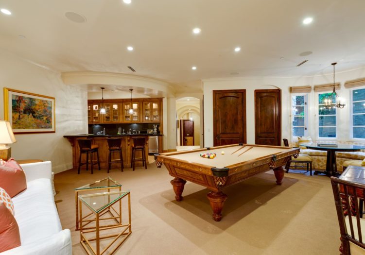 On the lower level, you will find a game room with full kitchen, a theater room, convenient half bath, an exercise room, and a temperature-controlled wine room that houses 3,000 bottles. There is plenty of natural light on the lower level, plus additional storage areas.