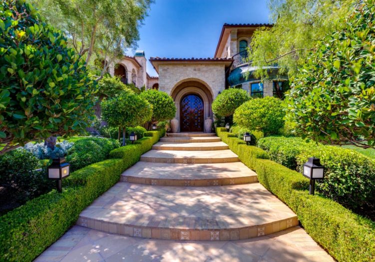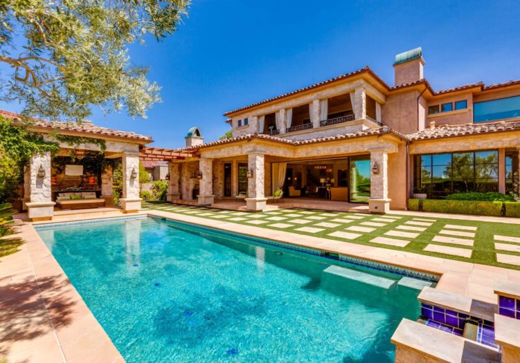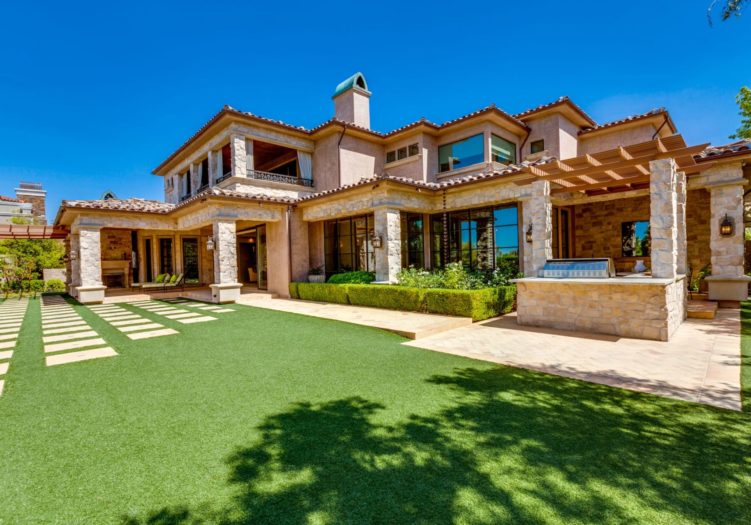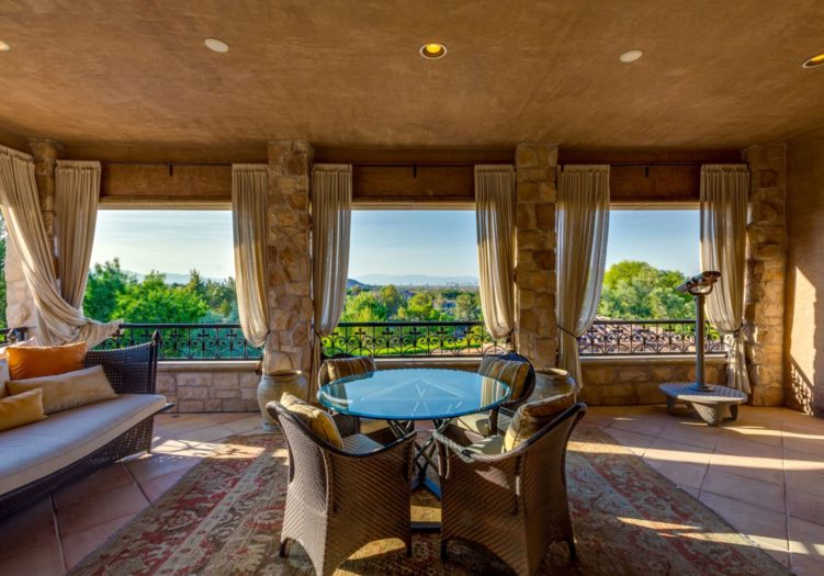 Indoor-outdoor rooms showcase both the beautiful landscape and the vast views of the Strip, golf course and majestic mountain that surround. The house itself is large, yet it feels relaxed and warmly inviting. This home lends itself to gracious entertaining year around, from cozy fireside dinners to large summer parties. Upon arrival, grand entry doors lead into a romantic courtyard area that adds considerable outdoor entertainment space.