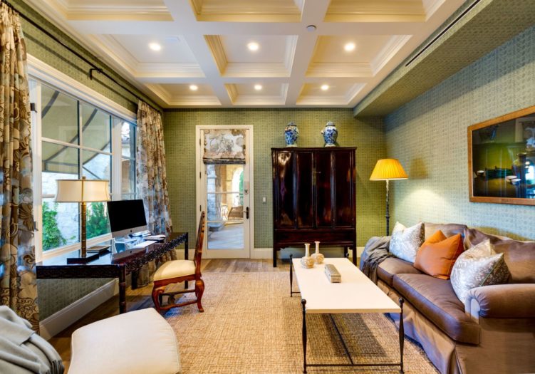 A rich mahogany-paneled study is just off of the great room, providing a cozy place to read by the fire. The kitchen in itself is a beauty in form and function, from morning light flooding into the adjoining morning room to the comfortable adjacent breakfast area. You will find a true working kitchen, with two farmhouse sinks, two dishwashers, a large kitchen island, Subzero refrigerator and drawers, steamer, Miele coffee maker, huge built-in gas range, additional ovens, pot filler, and plenty of storage.There is a large walk-in pantry and butler's pantry. The dining room has richly upholstered walls for a comfortable inviting atmosphere, breathtaking hand-painted ceilings, and gorgeous designer light fixtures. The room opens to the courtyard creating an indoor-outdoor dining experience at its finest.