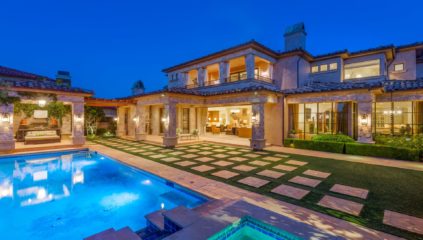 Welcome to 46 Olympia Hills Circle, a European-inspired home that reflects today's living at its best. Indoor-outdoor rooms showcase both the beautiful landscape and the vast views of the Strip, golf course and majestic mountain that surround. The house itself is large, yet it feels relaxed and warmly inviting. This home lends itself to gracious entertaining year around, from cozy fireside dinners to large summer parties. Upon arrival, grand entry doors lead into a romantic courtyard area that adds considerable outdoor entertainment space. As you enter the home, you are immediately struck by an awe-inspiring setting. Views of the beautiful pool area, reclaimed French Oak floors, breathtaking hand-painted ceilings, exceptional detail, and quality craftsmanship extends before you. The great room features back to back sofas to divide the expansive space, on one side is a wet-bar that features the most beautiful onyx top, bringing a slight contemporary tone to the home, adjacent from built-in custom, hand-carved cabinetry that houses a television next to one of 9 antique stone fireplaces found throughout the home. A wall of pocket doors opens to the incredible backyard with a large covered patio, outdoor fireplace, additional entertaining spaces, a classic pool design and plenty of room to roam. A rich mahogany-paneled study is just off of the great room, providing a cozy place to read by the fire. The kitchen in itself is a beauty in form and function, from morning light flooding into the adjoining morning room to the comfortable adjacent breakfast area. You will find a true working kitchen, with two farmhouse sinks, two dishwashers, a large kitchen island, Subzero refrigerator and drawers, steamer, Miele coffee maker, huge built-in gas range, additional ovens, pot filler, and plenty of storage.There is a large walk-in pantry and butler's pantry. The dining room has richly upholstered walls for a comfortable inviting atmosphere, breathtaking hand-painted ceilings, and gorgeous designer light fixtures. The room opens to the courtyard creating an indoor-outdoor dining experience at its finest. On the main floor, you will find an exquisite bedroom en suite offering custom built-in bookcases, a charming fireplace to read by, and a large walk-in closet. With plenty of natural light flooding into the room highlighting the antique stone floors, one feels like you are in the South of France. On the lower level, you will find a game room with full kitchen, a theater room, convenient half bath, an exercise room, and a temperature-controlled wine room that houses 3,000 bottles. There is plenty of natural light on the lower level, plus additional storage areas. The upper master bedroom floor includes a tranquil guest bedroom en suite, a tremendous walk-in closet, and a private balcony. As you walk down the hallway with antique mirrors, exquisite custom light fixtures cast a beautiful glow, and the master bedroom greets you with double mahogany entry doors that add a grand, luxurious feel. The stone fireplace in this room creates an intimate and inviting ambiance. You are immediately drawn to the outside balcony with Strip, mountain and golf course views. Separate custom designed his and her bathrooms, walk-in closets, and dressing areas were a must. Each bathroom has exquisite stone detailing, towel warming drawers, televisions for your morning news, and lots of natural light. A convenient coffee bar is located off of the master bedroom, perfect for fixing your morning café-au- lait to enjoy on the expansive covered terrace. There is a beautiful study overlooking the courtyard below, a comfortable space to relax or use as a private office. The casita, with a separate entry area, is on the second level which can be accessed from the courtyard. The casita features a large bathroom, walk-in closet, private balcony, and beautiful serene mountain views. This home features an outdoor kitchen with multiple dining areas, a no-chlorine pool, perfect for morning laps, a nice size yard with synthetic grass, a dog run on the side of the house, outdoor speakers, and beautiful well-established landscaping. Plus, there is a large 4-car climate-controlled garage with abundant storage.