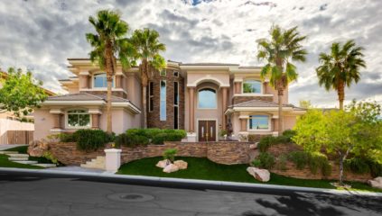 Beautiful custom home in guard gated Roma Hills. Nestled against the hillside with extraordinary Strip views, this 4,945 square foot residence has been highly upgraded and offers pristine craftsmanship, as well as, a brand new Google smart home system. The grand open layout is bright with natural light including formal and casual living areas. Gorgeous built-ins were incorporated throughout including a custom wine cellar that houses up to 180 bottles, an entertainment center in the family room, and storage in the fourth bedroom currently used as an office. The gourmet kitchen and eat-in dining area opens to the family room and features all new appliances, bar seating, and a prep island. The outstanding owner’s suite includes full Strip and city views, dual vanities, Jacuzzi jetted tub, walk-in shower with multiple shower features, two oversized walk-in closets, plus a boutique formal ladies’ private closet & bathroom. Entertaining comes to life with the sensational backyard! Designer rock and landscape lighting surrounds the pool/spa, putting green, and covered cabana. Newly installed outdoor kitchen features granite countertops, Memphis smoker/grill, refrigerator, and ice maker. In addition, a patio fireplace and pool fountain make this an ideal outdoor setting.