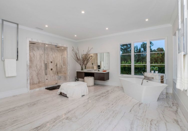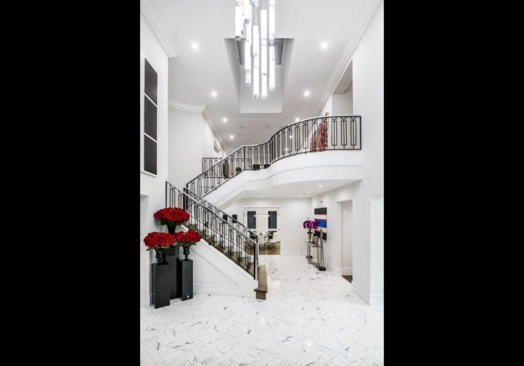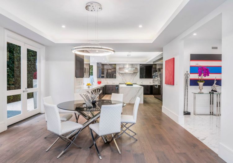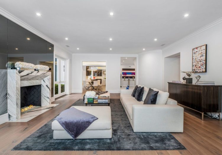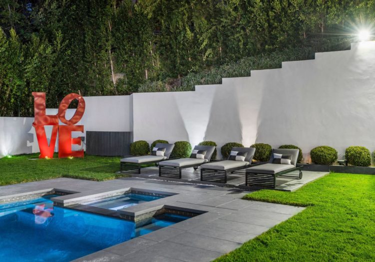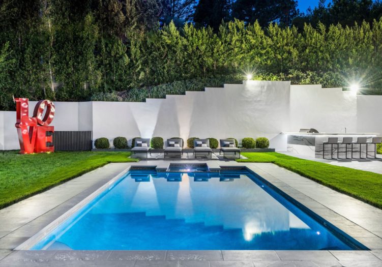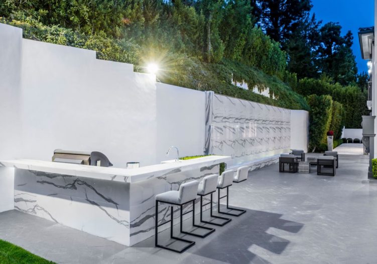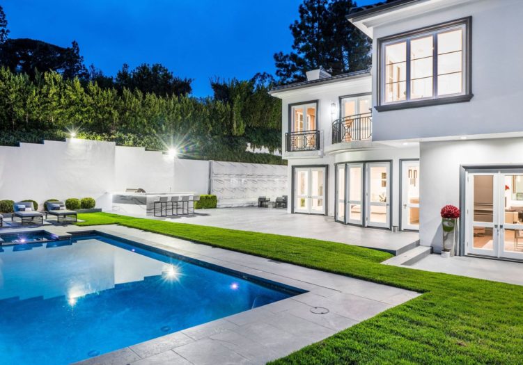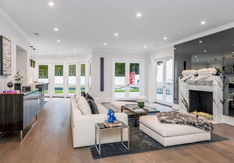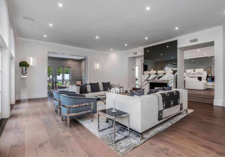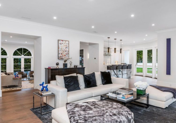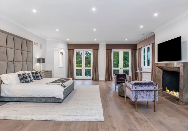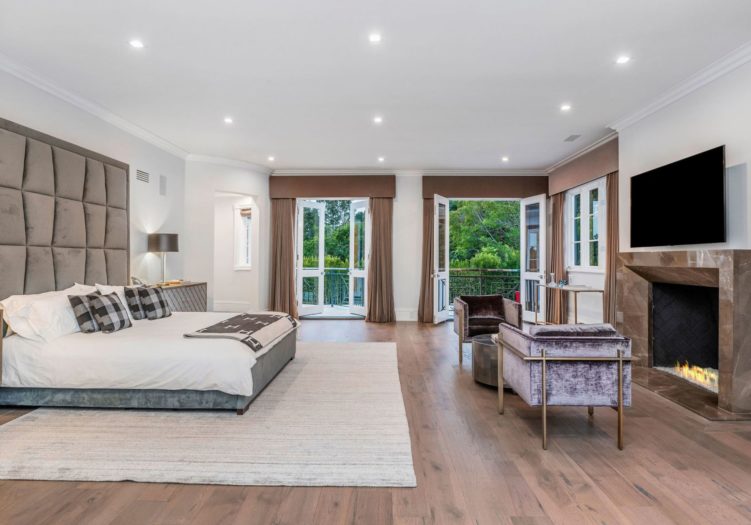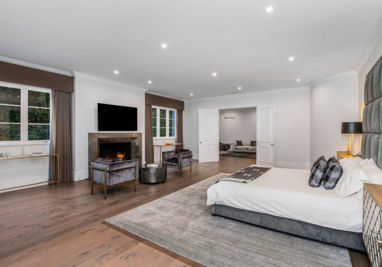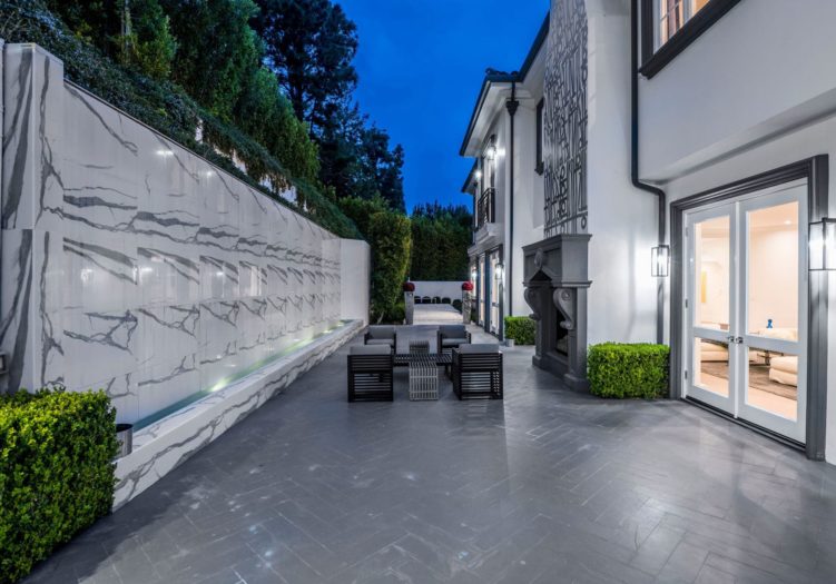 and close to the Beverly Hills Hotel and Rodeo Drive, this transitional contemporary estate has been re-imagined for today’s luxury lifestyle. With its grand presence sitting up from the street, the magnificent artistry begins at the gated entry which opens into a double staircase flanked by a water wall and a spacious motor court. The two-story foyer flows into the perfectly executed floor plan with spacious public rooms on the main level. High ceilings, French doors and custom Oak wide-plank floors are found throughout. A large living room with fireplace, formal dining room, spacious family room with fireplace and wet bar, office with built-in cabinetry, custom Bang and Olufsen media room, one bedroom suite plus a large designer kitchen with breakfast area are featured on the main level. A spectacular, approximately 1,400 square foot master suite includes a sitting area with fireplace, terrace and oversized, dual bathrooms with sauna and steam shower plus dual dressing rooms. Three additional bedroom suites as well as an upstairs family room complete the second level. State-of-the-art features include Control4 home automation for lights, sound, security, heat and cooling, pool and fountains plus custom camera system controlled from phone/ipad/computer. The home is offered fully furnished with designer furniture from Harrods London and all custom designer lighting. The incredibly manicured grounds include a pool and spa, large grassy yard and a tranquil meditation garden. The backdrop of a dramatic water wall spans the outdoor kitchen and living room with fireplace. This property truly encompasses the ultimate in luxury Beverly Hills living. Available fully furnished with designer furniture & all designer lighting.Offered at $95,000/mo unfurnished or $110,000/mo furnished.