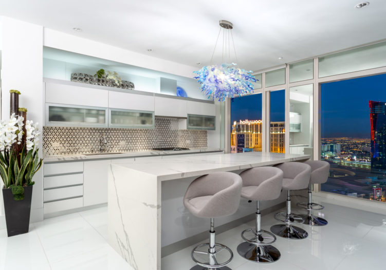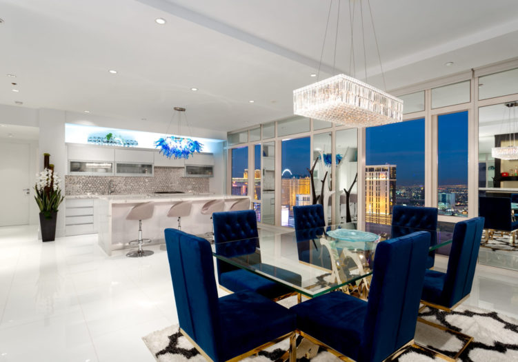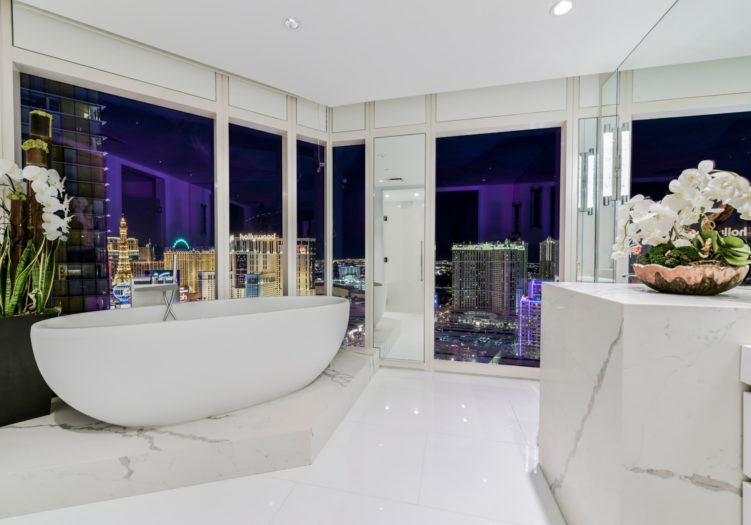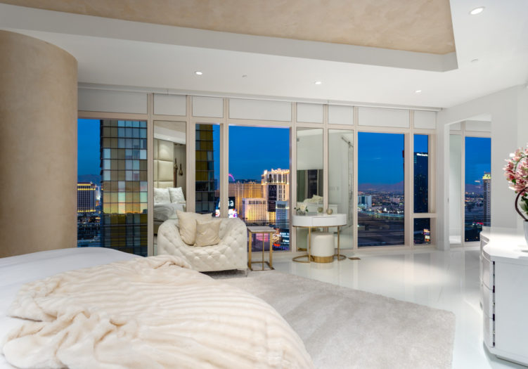 This exquisite building offers unparalleled 5-star amenities, dining, and services. Residence #2508 is a showcase for modern elegance and interior design, unlike any other unit in the building. Luxuriously renovated to perfection with the best views that Vegas has to offer. Two spa-inspired master suites, white on white dream kitchen, stunning custom chandeliers, all with an exquisite eye for detail.