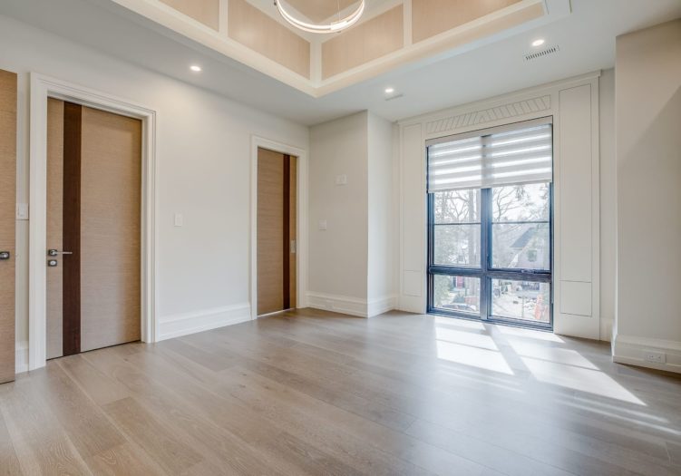 The private Master Bedroom, entered through a set of doors, features “His” and “Hers” dressing rooms, a wet bar, a luxurious 10-piece ensuite and a Dressing Room.