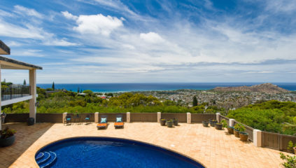Ideally situated on the upper tier of Maunalani Heights, this beautiful 2 story home has 5 BR, 5 BA - perfect for single- or multi-generational living. Enjoy stunning coastal & ocean views from each living area + Master & Guest Suite. Relish rich hardwood floors & incredible views from floor to ceiling windows in the light, bright kitchen w/ family-style counter seating & dining rm w/refined wood paneling. X- large lanais, sparkling pool & deck are surrounded by tropical foliage, perfect for indoor/outdoor entertainment! "Enjoy stunning coastal & ocean views from each living area + Master & Guest Suite."