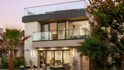Offering an unmatched level of refinement, 428 Fernleaf is the latest interpretation of attached single family living from JFB Custom Homes; with architecture by Studio del Mar and development consulting by VALIA Design & Consult. Panes of glass balanced by stone, metal cladding, and smooth coat stucco are textural design elements found elegantly woven throughout this newly constructed home. Situated in a premium location on a quiet block, south of PCH, only footsteps to the Goldenrod Footbridge and Begonia Park, this residence affords a spacious open floorplan, maximizing the breadth of main level indoor/outdoor living. The kitchen, living room, and dining room, are flanked by a wall of glass, elegantly disappearing into the stone façade leading to the front patio. Adjoining the dining room is a perfectly framed day-lit loggia replete with fireplace, providing a private sanctuary for tranquil relaxation or entertaining. The oversized owner’s suite with walk in closet, free standing tub framed by a corner glass window; a see-through linear fireplace compliments the designer finished bathroom with Waterworks fixtures blending seamlessly with Clé and Ann Sacks tiling. A full-size laundry room and additional guest suite complete the second floor. The top floor of the residence contains a third bedroom with private patio & adjacent rooftop deck for entertaining. Gather for the nightly sunsets and glimpse of the Ocean and Catalina Island with the ideal western exposure. "...a private sanctuary for tranquil relaxation or entertaining."